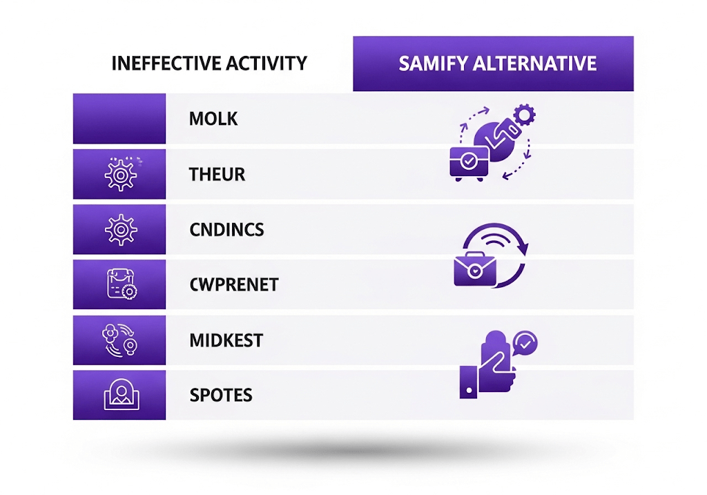 | Ineffective activity | Why it fails | Samify alternative | Expected outcome |