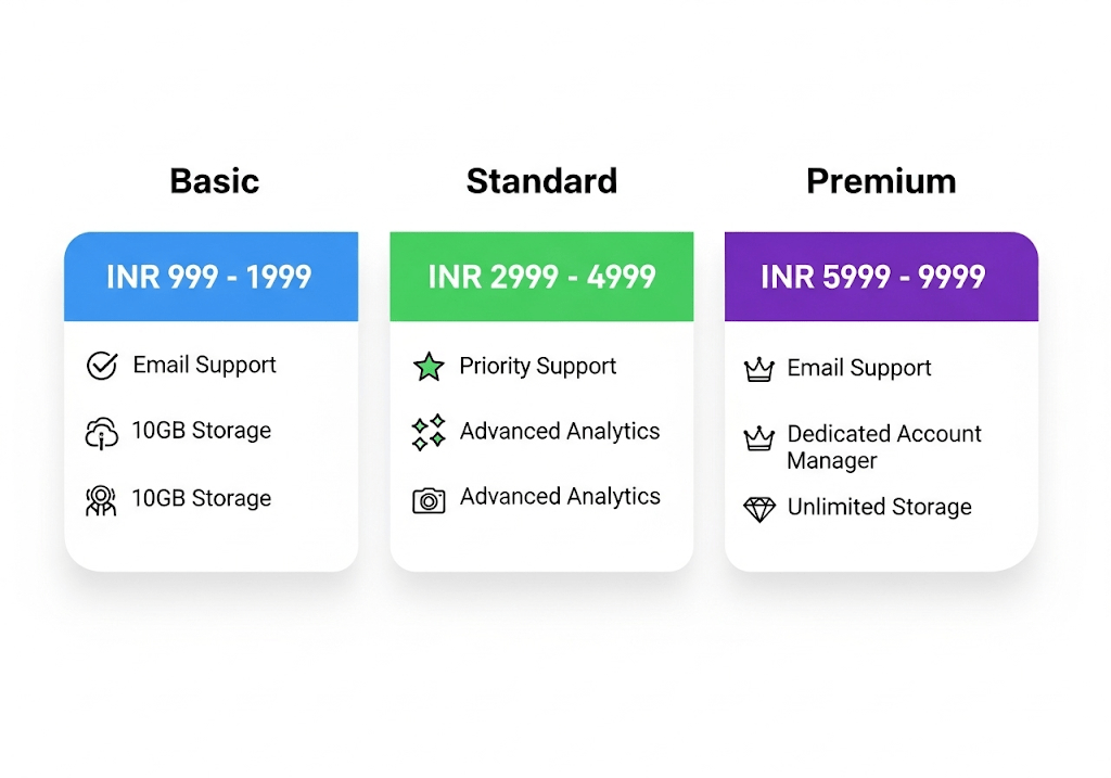 | Standard (custom) | ₹40,000–₹90,000 | ₹6,000–₹12,000/yr support | Growing businesses needing branding |